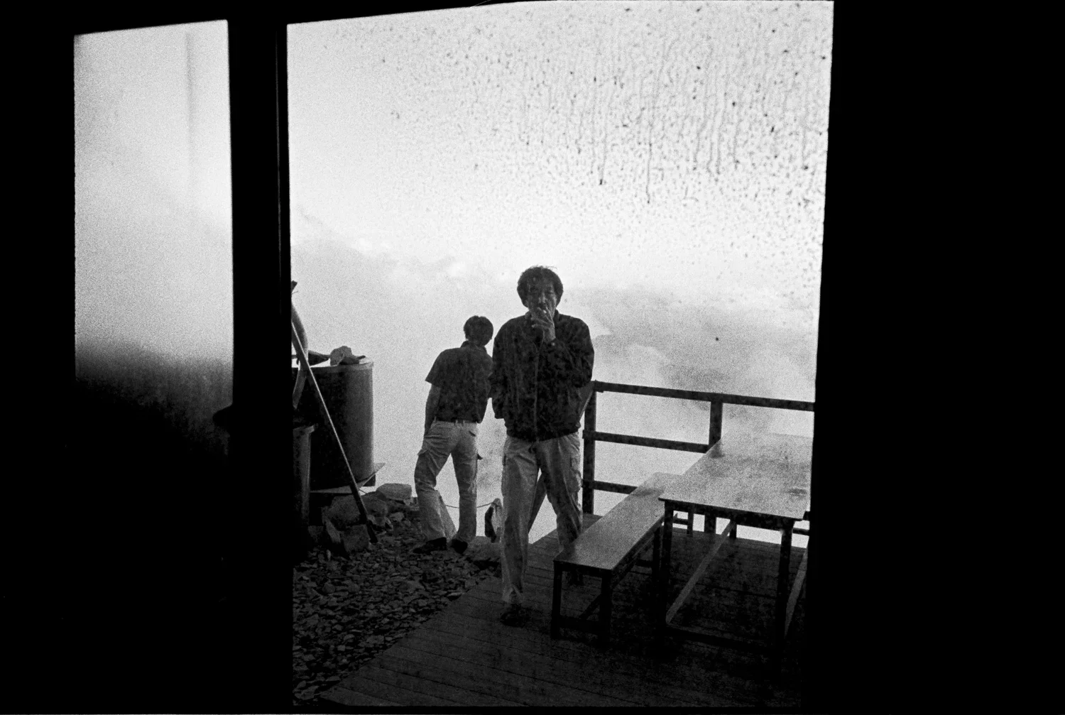 In heavy rain, I climbed a steep rocky trail for three hours until I reached a small hut shrouded in dense fog.